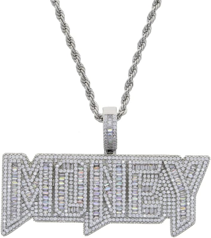 ATJMLADYJEWELRY Iced Out Bling 5A Baguette CZ Paved Letter Money Pendant Necklace Hip Hop Men Jewelry